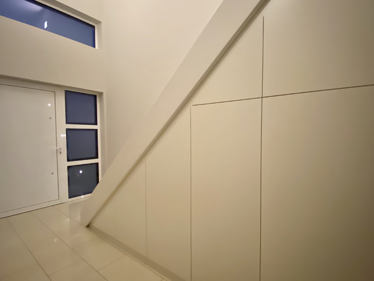 Onder een trap ontstaat vaak een nutteloze ruimte. Dat is erg jammer. Om de ruimte onder deze trap optimaal te benutten en in te richten, ontwierp VTkamerontwerp voor deze klant enkele maatkasten. Het was tevens de wens van de klant om deze ruimte een moderne look te geven. Het gebruik van ‘greeploze’ kastfronten, in combinatie met een nieuwe inox muurleuning, zorgen voor een strak geheel. Verder werd de traditionele, klassieke deur vervangen door een schuifdeur, die volledig werd ingewerkt in een voorzetwand.