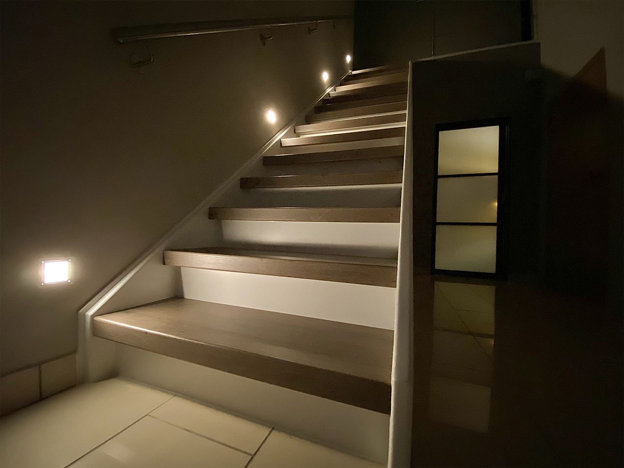 Tot slot werd ook de volledige trap onder handen genomen. Hij kreeg niet alleen een nieuw laagje verf, maar ook tredecovers. In deze traphal werd dus niet alleen de ‘verloren’ ruimte optimaal ingevuld; door het gebruik van de juiste materialen werd de ruimte niet alleen ‘opengetrokken’, maar heeft deze nu ook een moderne en frisse uitstraling.