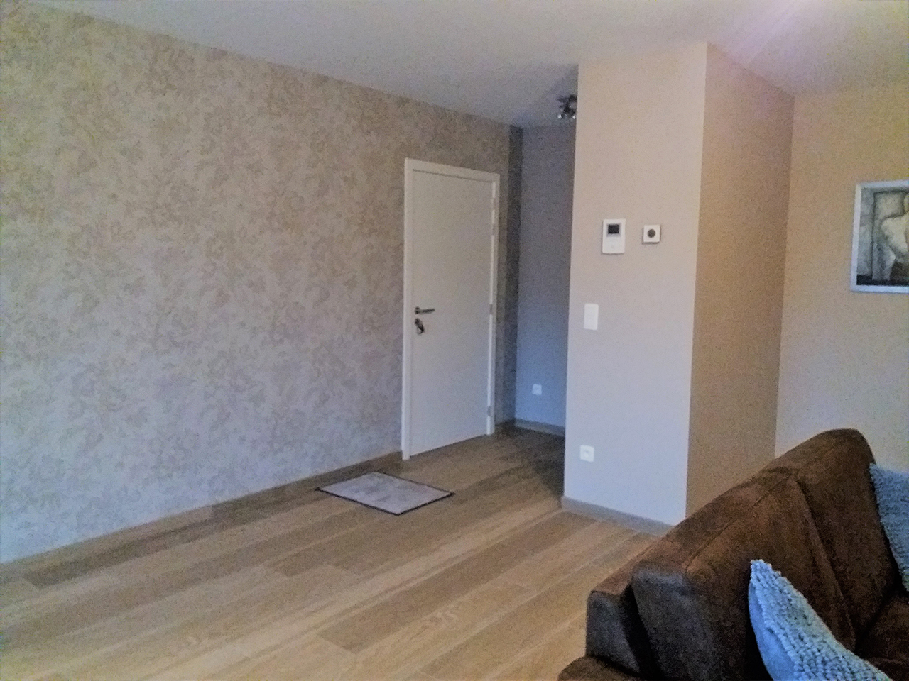 Dit ruim appartement, met loft-gevoel, miste een ontvangstruimte. De grote open ruimte zorgt voor een zeer gezellige en ruime woonkamer, maar beperkt de mogelijkheden om er kasten te plaatsen.