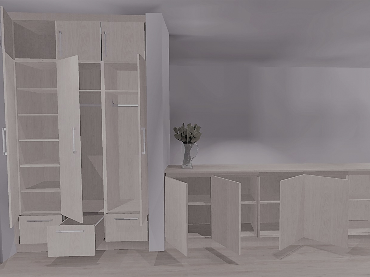 Voor de afwerking werd er rekening gehouden met de bestaande vloer en de kleur van de muren.  Op die manier vormen de maatkasten een mooi geheel met de rest van de ruimte.  Deze, relatief kleine, ingreep gaf dit interieur toch een stevige boost.